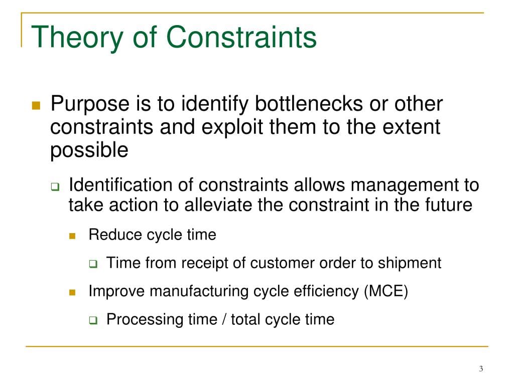 - Repeat the Process: Once the current constraint is optimised, identify the next constraint and repeat the process.